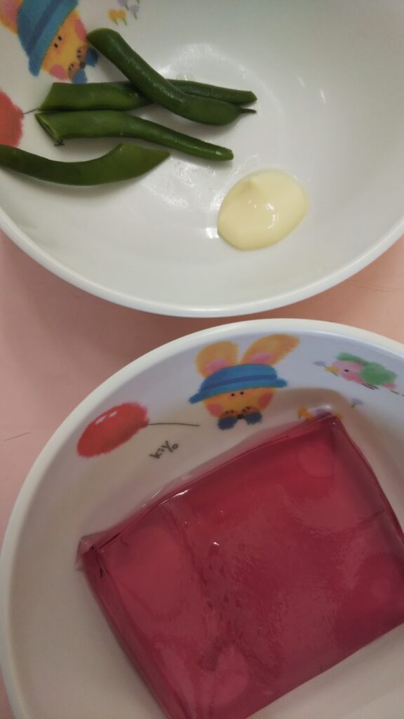 19 8月 2024 いんげんまめ、美味しいね☆ by oshinobe | posted in: 食育・給食, 📖ブログ💬 | 0 お盆明け、みんな元気に登園しています。朝、年長さんと一緒に農園で、スイカやナス🍆、ピーマン🫑、オクラ、そして、インゲン豆を収穫しました!なかなか大きく多くならないインゲン豆ですが、せっかくなので少しずつ、給食室で茹でてもらって、おやつに食べました♪少しですが、自分たちで収穫したものは、また格別ですよね☆ おいしいね、おやつ♪
