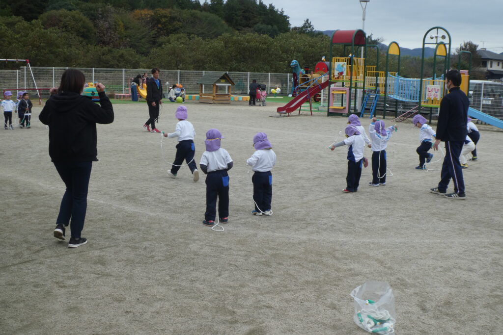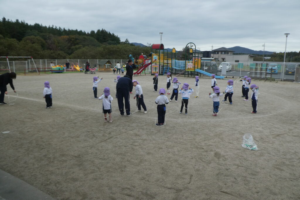 20 11月 2024 上手に跳べるかな?💓😳 by oshinobe | posted in: 保育ギャラリー, 📖ブログ💬 | 0 今日の体育教室では、みんなで縄跳びに挑戦しました!最初は軽くピョン…と試すように跳んでいた子どもたち。 先生から上手に跳ぶ方法を聞き、コツをつかむと…ひとり、またひとりとピョンピョンと軽やかに跳ぶ姿が! 走り縄跳びにも挑戦!力強く縄を回して走ります! 終わるころにはみんな達成感に溢れたような笑顔!元気に体育の先生に挨拶をしていました! これからも様々な縄跳びあそびを楽しみながら一緒に挑戦していこうと思います♪