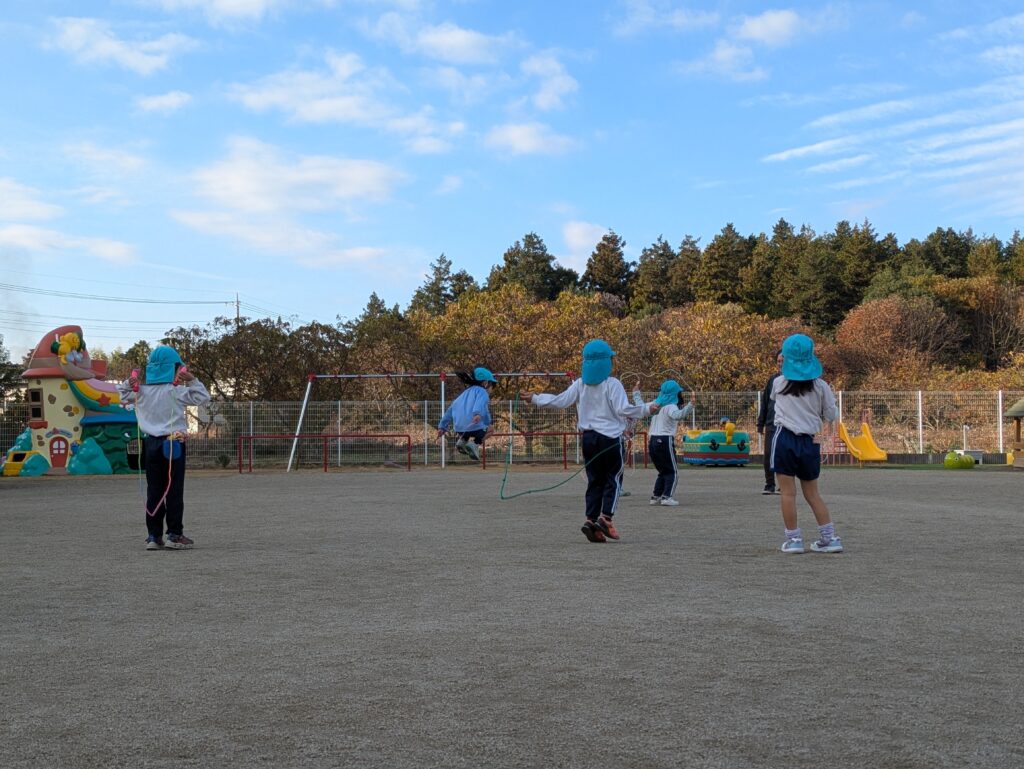 今日は、縄跳びからスタート!次から次へ、お友だちが外に出てきます。