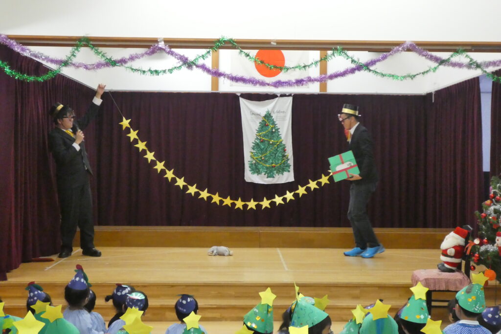先生たちからみんなへのプレゼントは、職員劇とマジック!