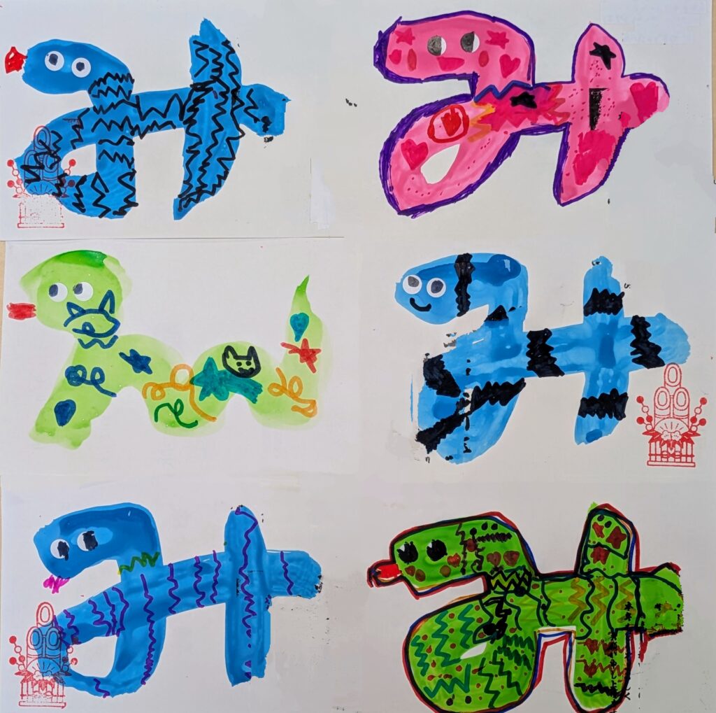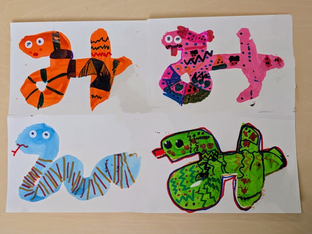 園長先生からは「へびが脱皮して自分の殻からでて大きくなっていくように、みんなも自分から”やってみよう!”とチャレンジしてみて、少しずつ大きくなっていこう✨」と、年長さんが作った素敵な「巳年🐍」の作品を見ながら、お話しをいただきました!