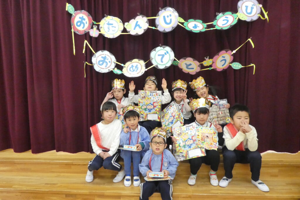 たんぽぽ組・ゆり組・ばら組のお誕生者のお友達です🤗🎂🎊