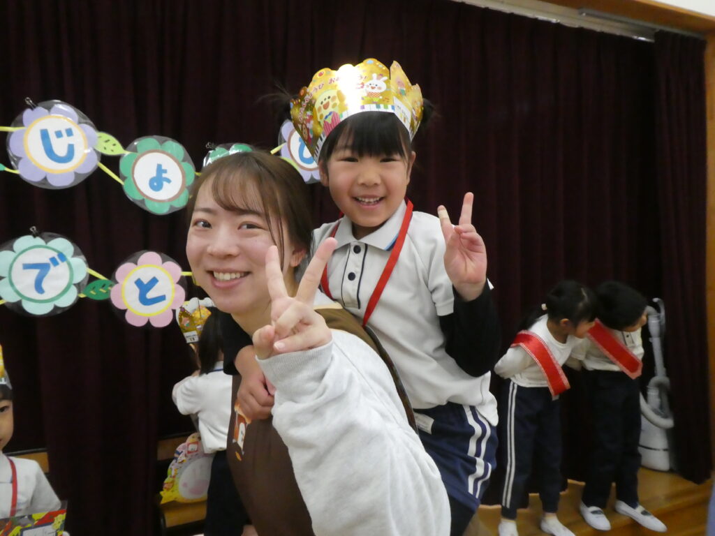 プレゼントをもらって🎁先生と一緒に写真📸✨を撮ってもらいニコニコ笑顔😁