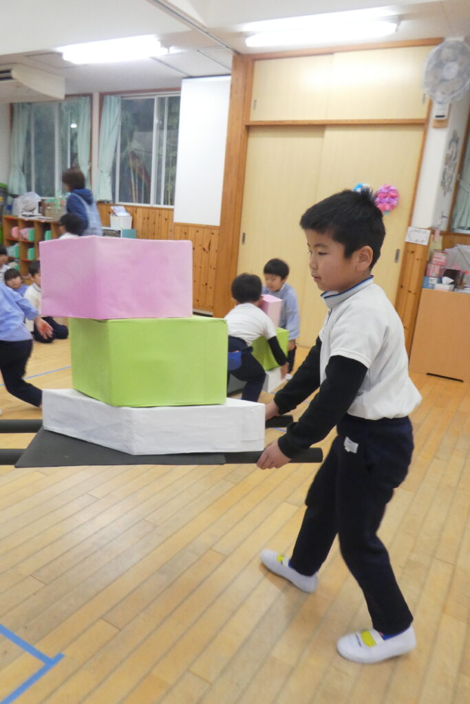 菱餅運びゲーム!落さないように慎重に運んでいましたね!