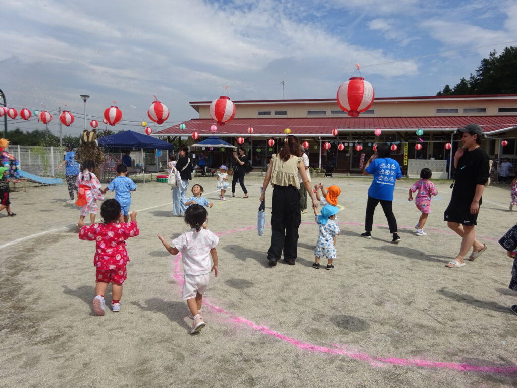 盆踊りを踊ったり、年中さん・年長さんによる和太鼓演奏やお神輿ワッショイがあります!