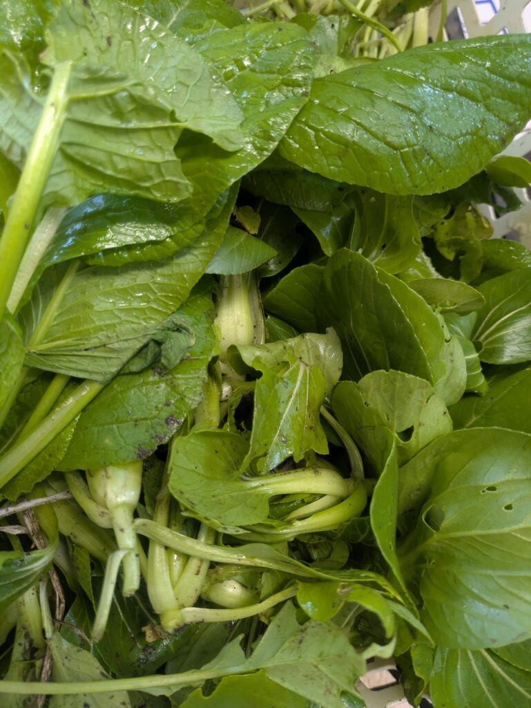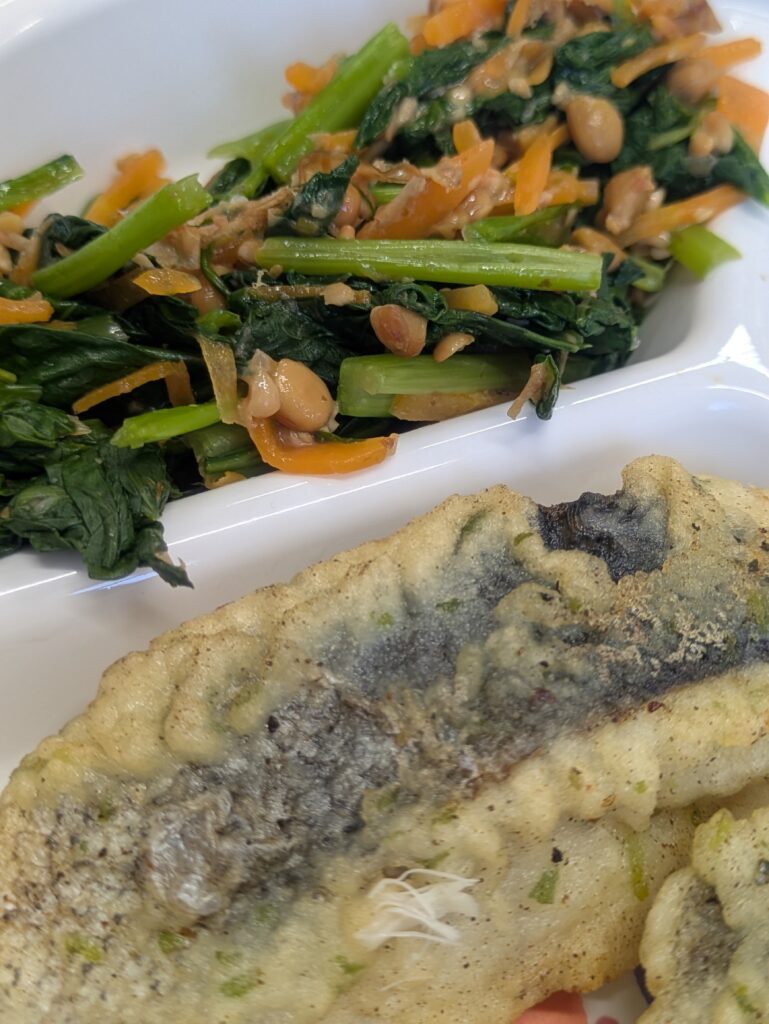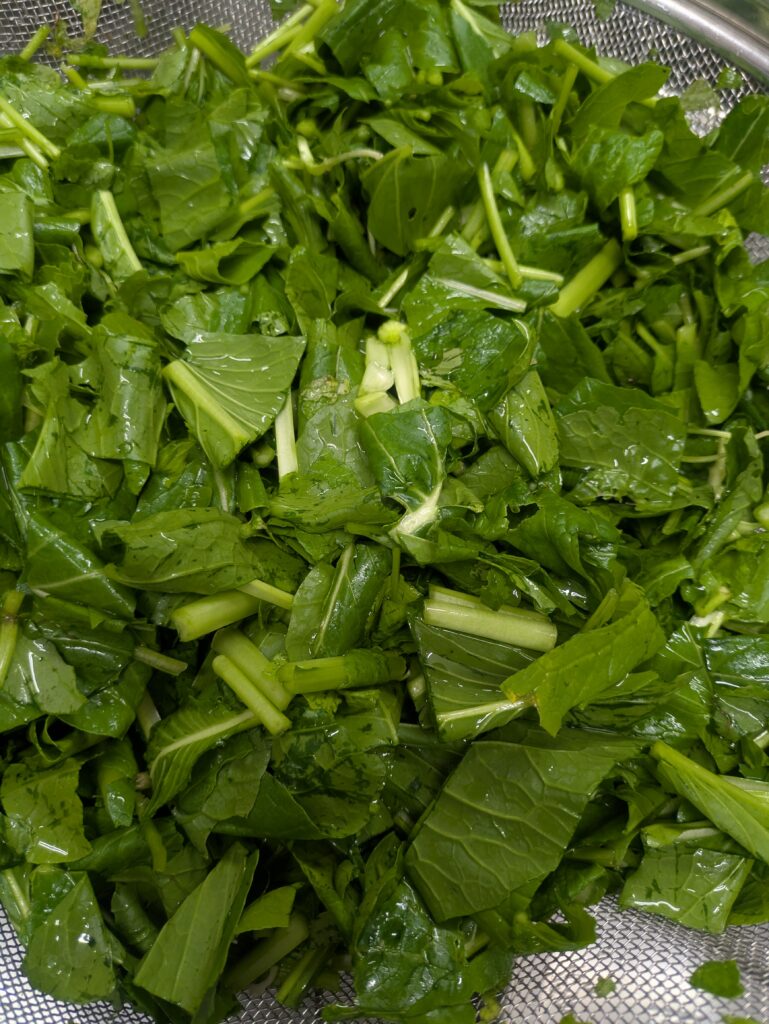 固くなくて、無農薬のおいしい、とれたての小松菜をつかった給食です。