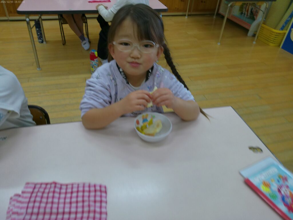はじめは破れてしまったお友達もいましたが、一個・ニ個と作っていくうちに量を調節したり、剥がれてしまった皮をくっつけたりと試行錯誤している様子でした😉