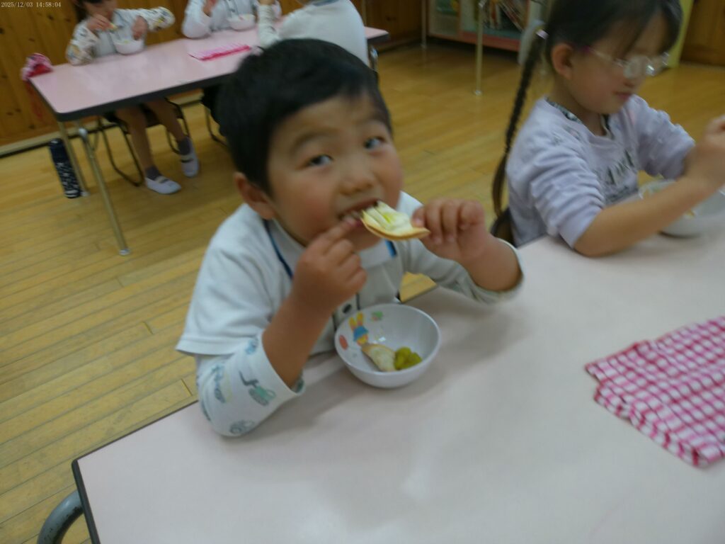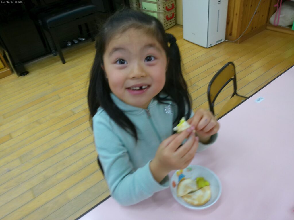 「ぎょうざの皮なのにあま~い!」とびっくりしていたお友達もいました😊