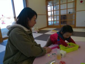ゆったりとした雰囲気の中で、おうちの人と楽しそうに製作を楽しんでいました🥰