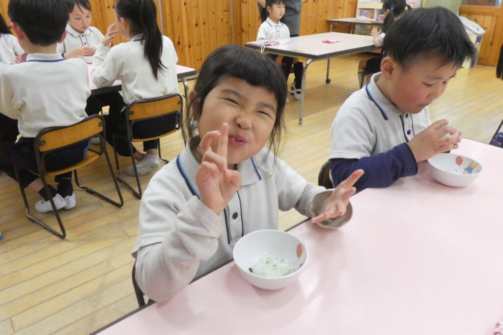 新鮮なお野菜たちは、給食室で丁寧に洗い、塩ゆでしてからご飯と混ぜました🍚
