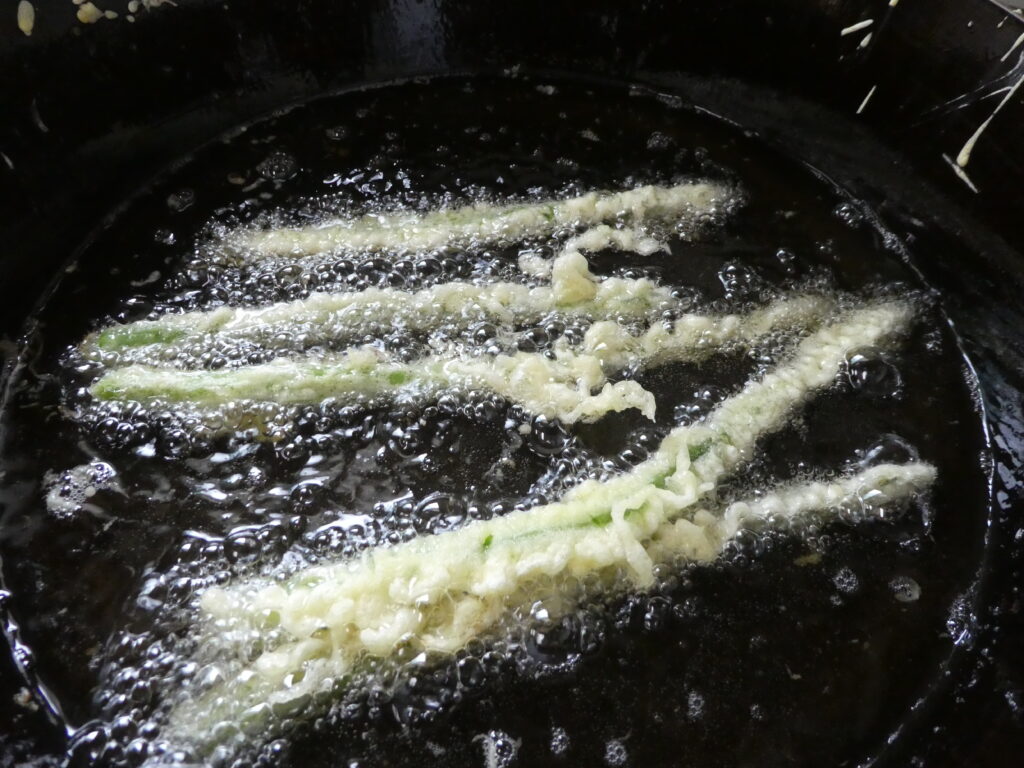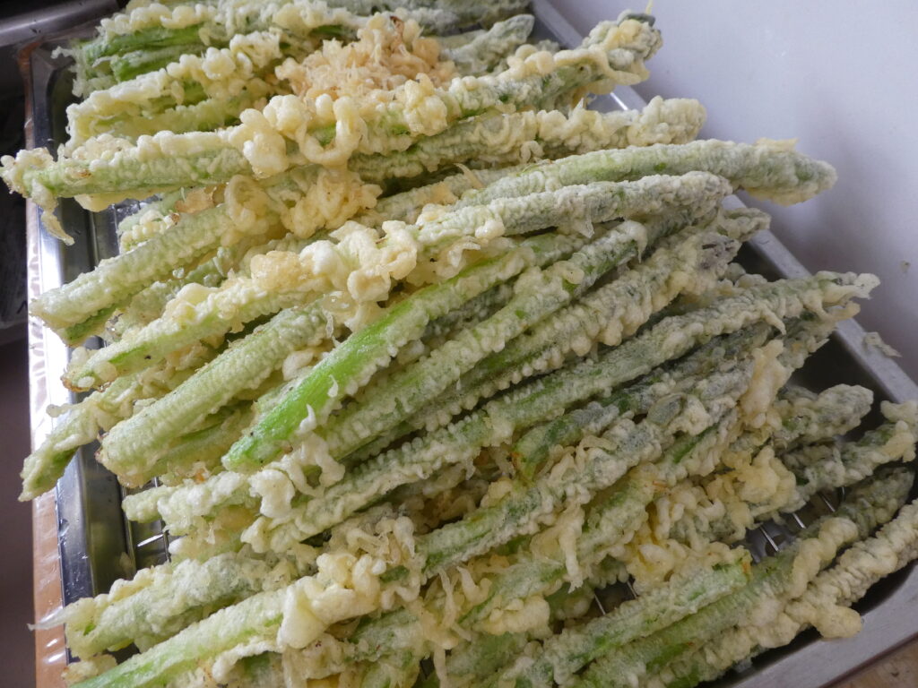 “ツヤツヤ・新鮮”なアスパラ、今日は、揚げたての「天ぷら」に大変身🎵